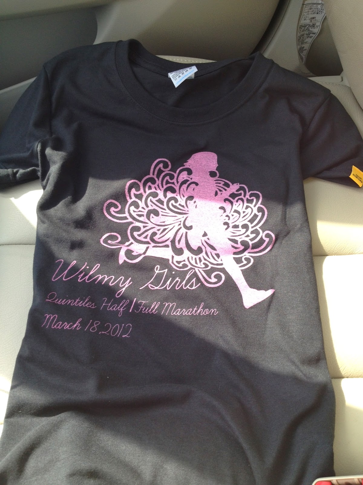 I also met up with a few of the girls I've been training with and picked up my race-day T-shirt. Our group had shirts made for all of us to wear tomorrow. (Super cute AND dry-fit... can't lose! ;) ) I love it!!